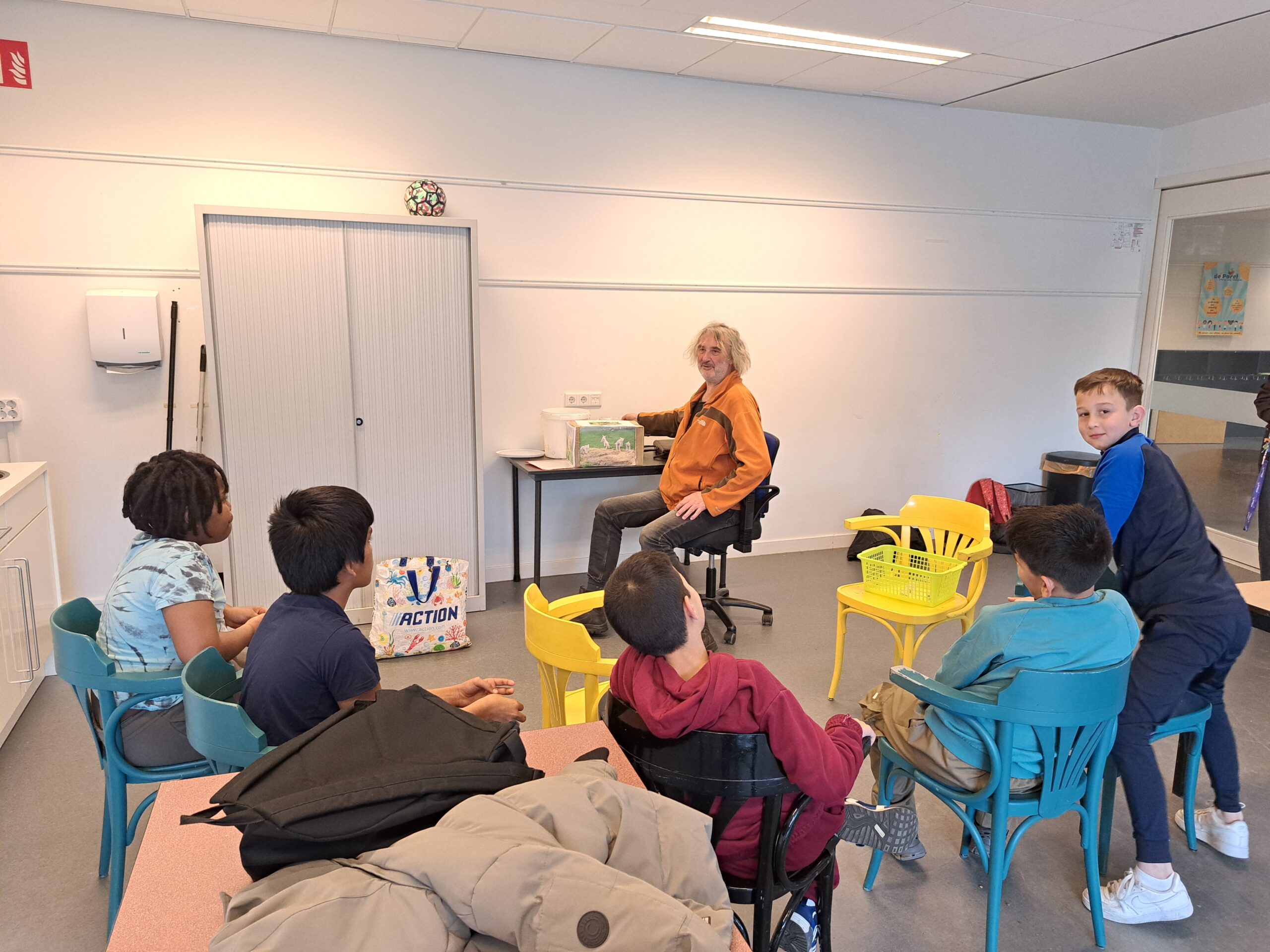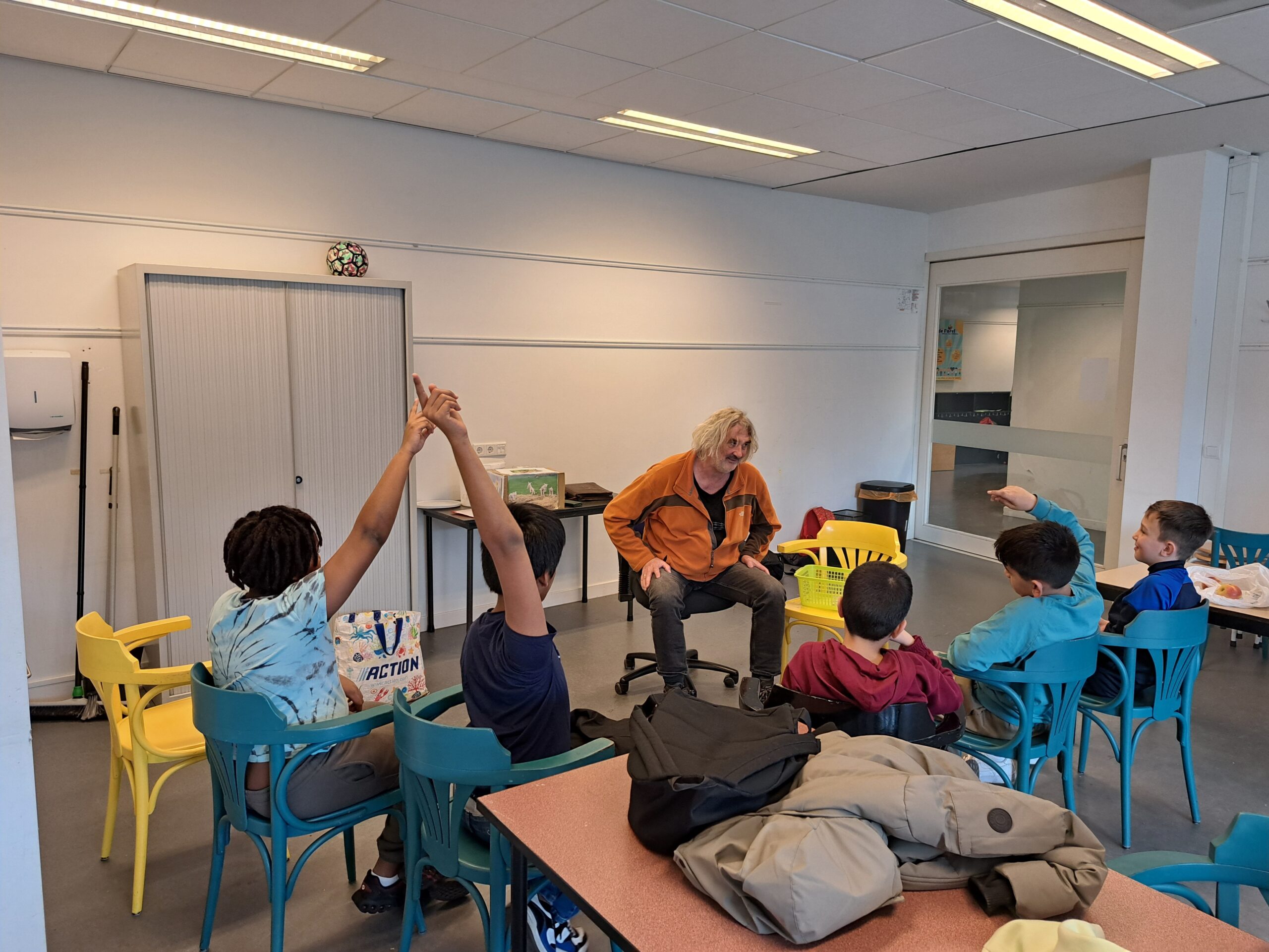 Het is maandagmiddag en we bevinden ons in een ruim klaslokaal op de benedenverdieping van De Parel. Door het raam klinkt het geluid van spelende kinderen op het schoolplein, met af en toe een doffe dreun van een bal tegen de muur. Jacques, eigenaar van Puur Buiten Zijn en aanbieder van lessen in natuureducatie, begint aan zijn een-na-laatste les in een reeks van acht met deze groep. De meeste lessen vonden buiten plaats. Samen liepen ze door knisperende sneeuw, zochten ze naar kikkervisjes en zagen ze de eerste krokussen opkomen. Die gedeelde ervaringen scheppen een band en dat zie je terug tijdens de les. De sfeer is ontspannen en de interactie voelt vertrouwd aan. Ze kennen elkaar inmiddels goed. Sommige leerlingen hebben het programma, dat De Parel aanbiedt in samenwerking met Breda Ontdekt!, zelfs al meerdere keren gevolgd.