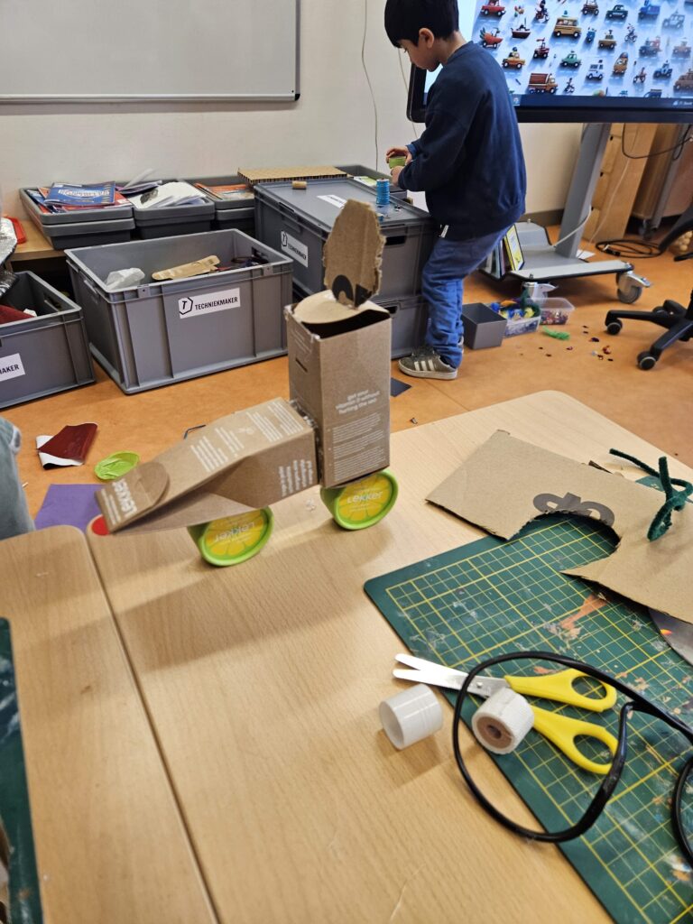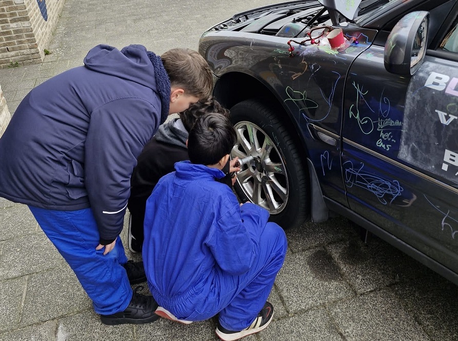 Gedurende het programma is elke klas dagelijks bezig geweest met de auto of met de techniek eromheen. De onderbouw ging vooral creatief aan de slag met het versieren van de auto, terwijl we met de bovenbouw echt de techniek hebben verkend. Onderdelen uit elkaar halen, er samen over praten en ze vervolgens weer in elkaar zetten. Snoeijs: ‘Het is mooi om te zien wanneer een kind echt gegrepen wordt door techniek.’