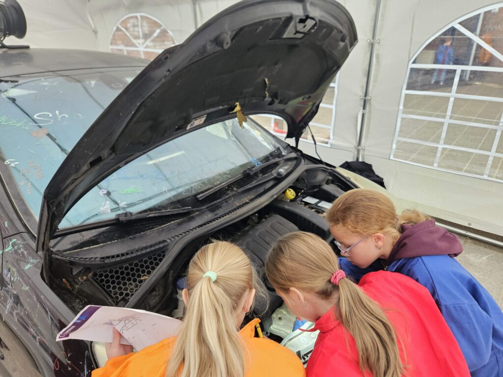 Tijdens het programma stond de auto op het schoolplein van OBS Het Noorderlicht: een constante herinnering aan het gezamenlijke project. Onder de motorkap kijken, onderdelen inspecteren of verder werken aan de versiering: het zorgde zichtbaar voor enthousiasme bij de leerlingen.